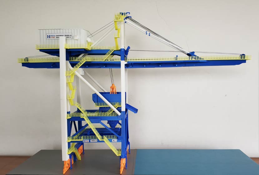 华新机电自2016年开展产品设计从传统CAD二维到全三维化设计的转换,从而迈入标准化、模块化乃至智能制造的技术生态系统。公司专门成立了 “三维设计推广组”,在公司高层的推动和技术中心同事的积极配合下,已初步实现了公司产品设计的三维化。结合项目的实际需求及对设计三维数据延伸的探索,三维设计推广组以马来西亚TJB卸船机项目三维模型为基础,应用3D打印技术,实现了从三维设计数据到1:100卸船机实体模型的转化。