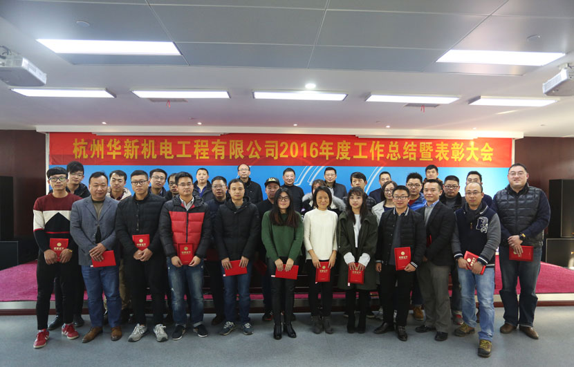 2017年1月21日,一年来披星戴月、四处奔波、风尘仆仆的华新机电同仁团聚一堂,召开了2016年度的工作总结暨表彰大会。天桥起重肖建平董事长,邓乐安总经理、范洪泉副总经理和谭竹青主席出席了大会。各子公司代表向大会作了工作汇报,公司对本部和子公司表现优异的员工进行了表彰,随后获奖代表分别进行了发言。