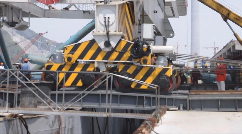 该两台卸船机于2013年6月底在张家港制造基地整机安装结束后,于7月11日开始滚装,分别于7月11日,7月13日滚装上船,7月17日出港,经7天海上航行后,卸船机抵达电厂码头,7月26日和28日,卸船机正式滚装上岸并顺利顶升入轨。