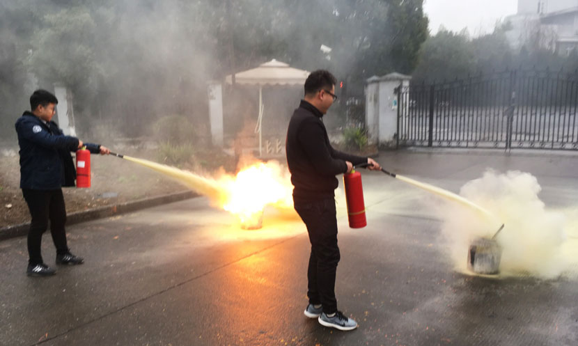 课堂培训结束后转到了室外,老师现场讲述了消防的注意事项以及器具的使用方法,重点介绍了“四会四要”等基本要领。参训人员随即分成两组轮流进行实际操作进行灭火演练,将理论与实际相结合,初步掌握了消防的基本实用技能,为本年度消防安全工作画上了句号。