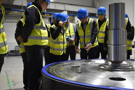 天桥起重党委委员/纪委书记黄建湘、华新机电总经理王吉如一行先后参观了南高齿展馆中国传动馆以及重型传动工厂,深入了解南高齿企业发展和起重产品情况,对南高齿的经营管理、车间生产及齿轮产品的标准化、智能化程度表示赞许。