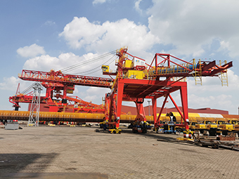 为了保障项目顺利发运,工作人员放弃端午假期的休息时间,加班加点,克服了码头工况复杂、雨季施工困难等诸多不利因素。6月7日凌晨3点,第一台卸船机顺利“滚装”上船;当天下午3点,第二台卸船机顺利“滚装”上船;6月8日,一台装船机“滚装”上船,为项目按时交付提供了保障。