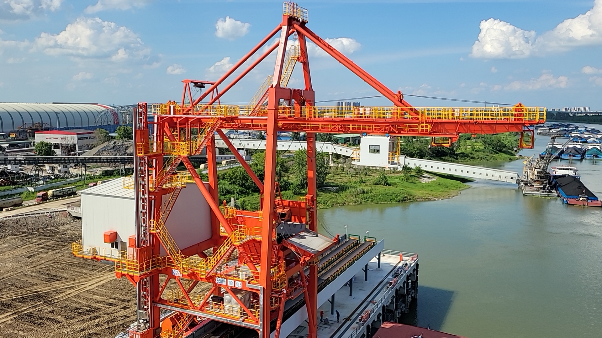 长源电力汉川公司四期扩建工程作为区域能源建设的重点项目,华新机电设计制作的 650t/h 卸船机直接关系到整个工程的推进节奏与后续稳定运行。现场员工秉持 “安全第一、质量至上” 的原则,主动作为,克服现场场地紧张、任务繁重等多重挑战,安全、高效、优质地完成了卸船机安装调试任务,充分展现了华新人的专业素养与责任担当。