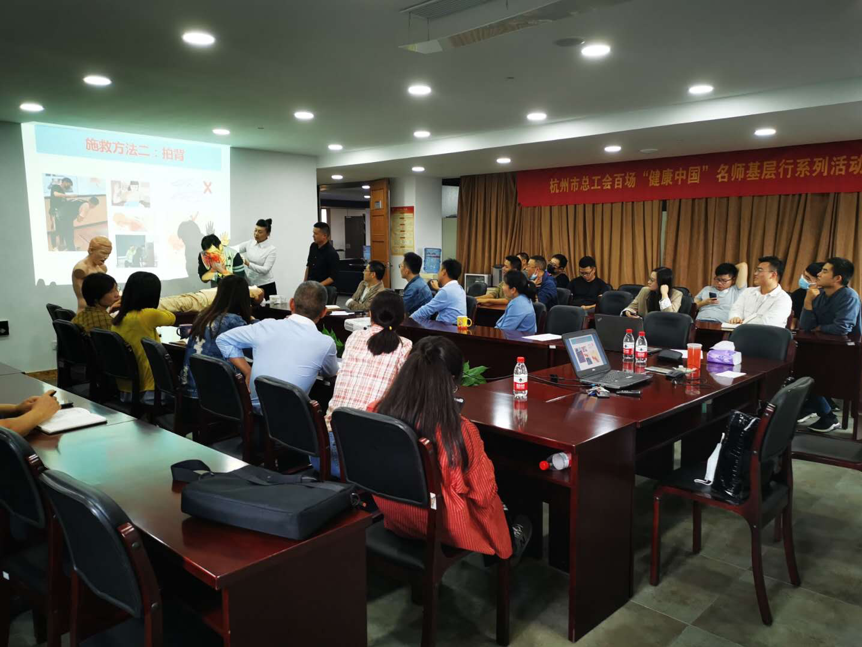 正值十月黄金周来临之际,为普及急救常识,进一步提高员工的安全救护意识和应急处理能力,增强应对突发情况和意外伤害的自救、互救能力,9月24日下午,杭州市总工会2020年在全市范围内开展的百场《健康中国》名师基层行送健康系列活动走进华新机电。